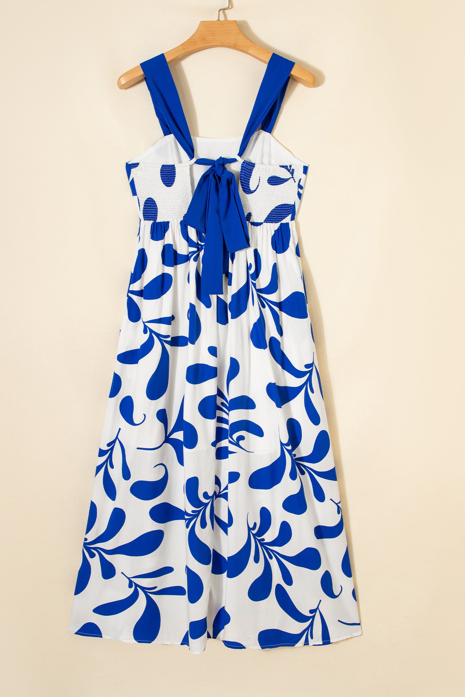 Blue Floral Print Crisscross Tie Back Sleeveless Long Dress