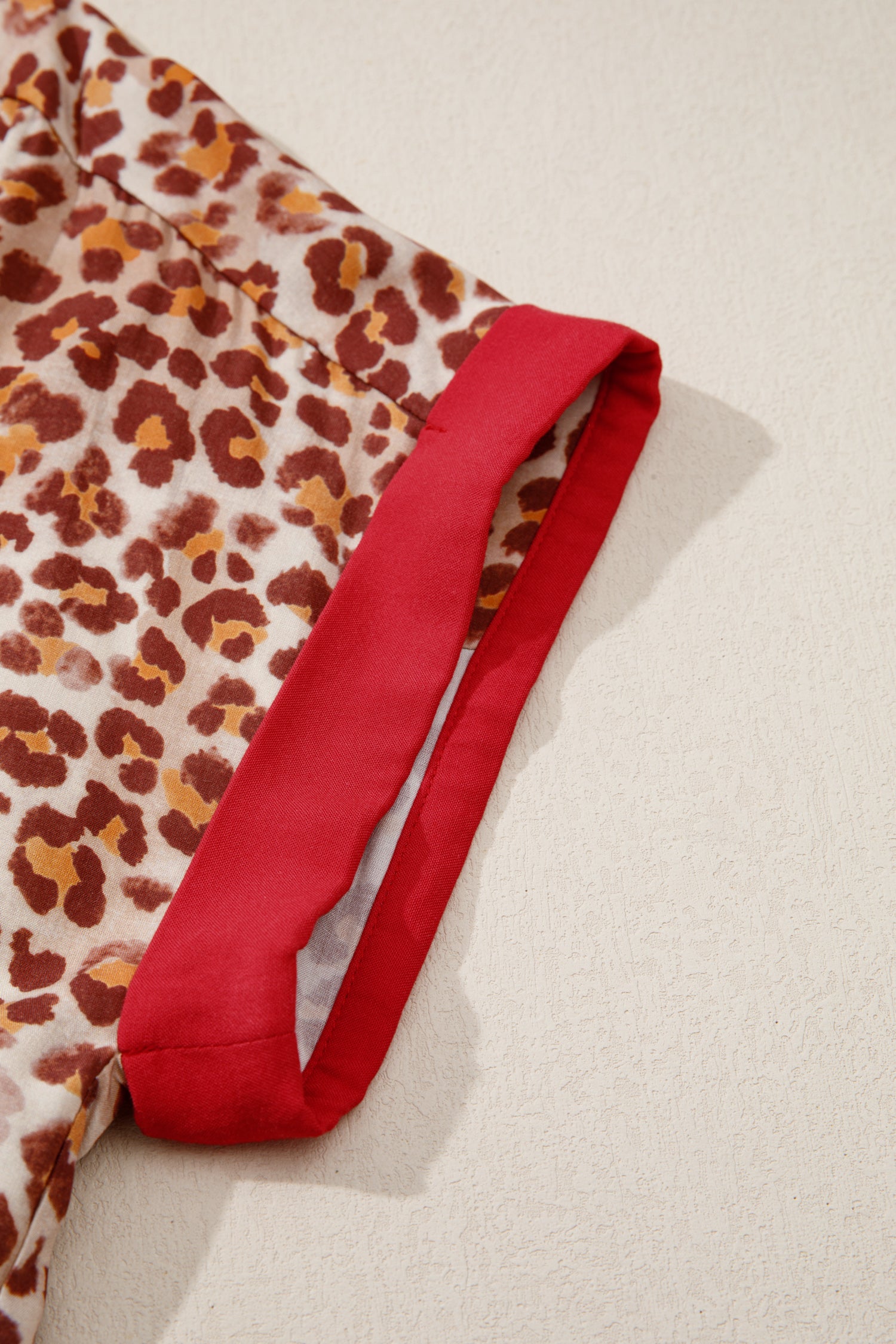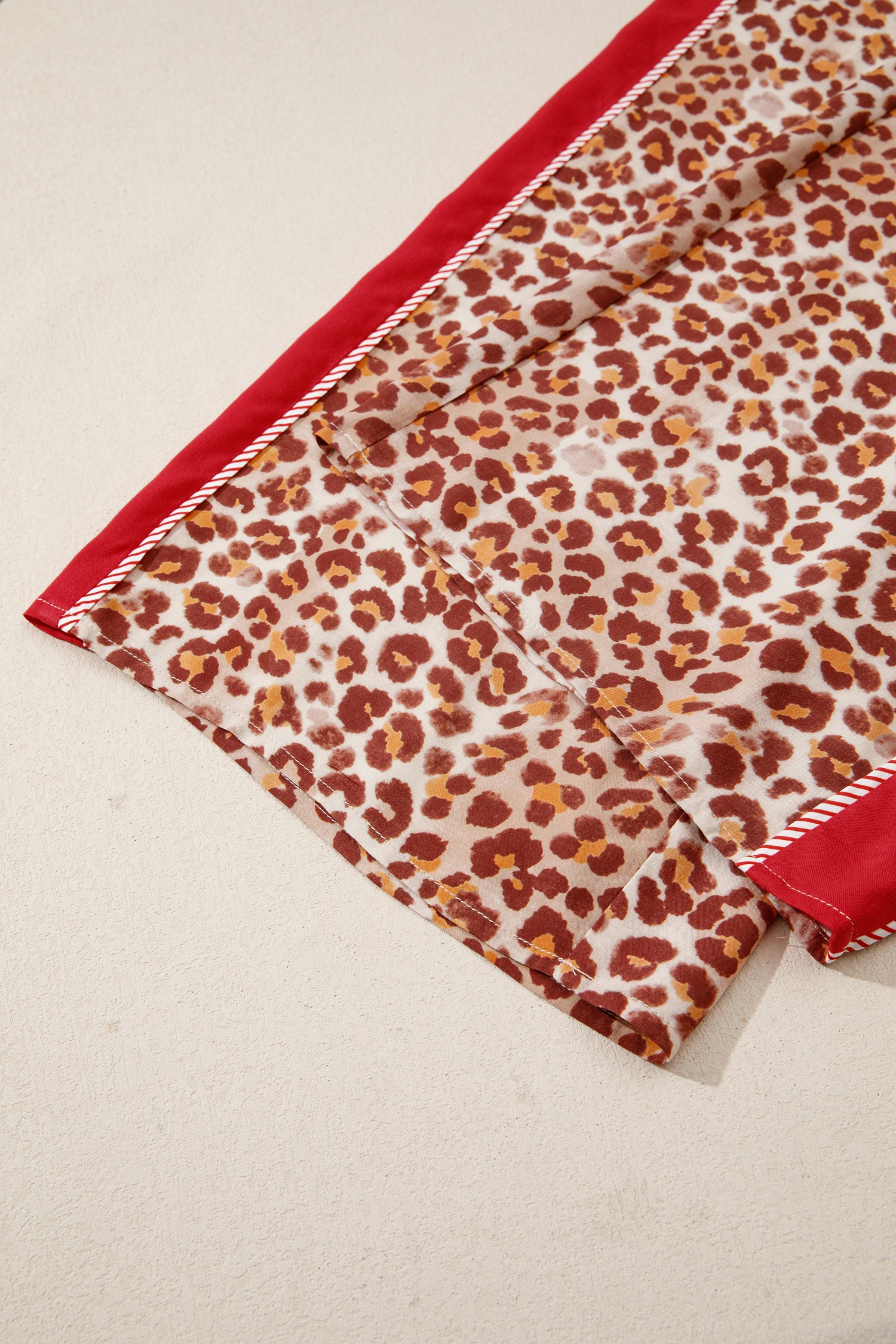Brown Contrast Trim Leopard Top and Pant Set