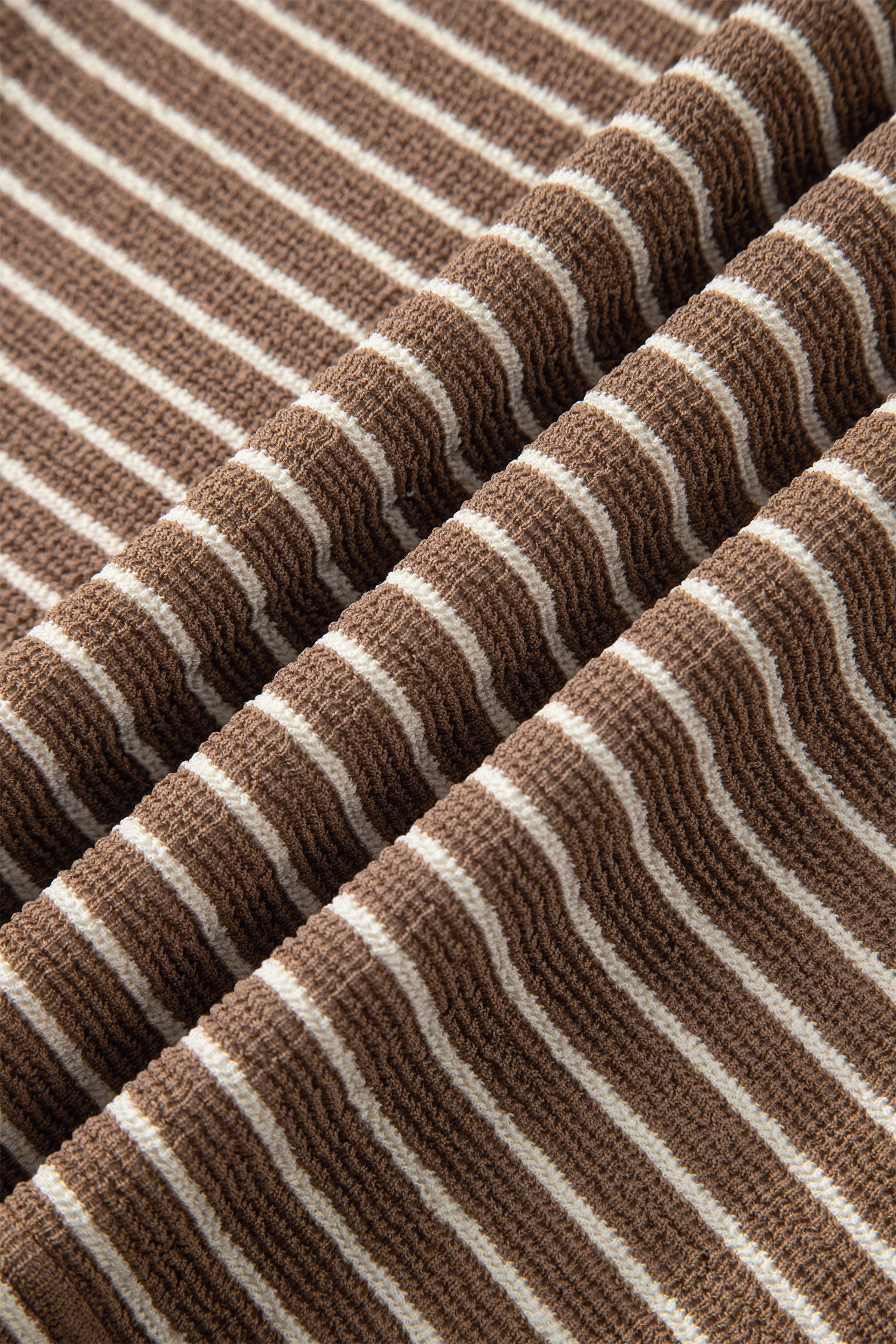 Khaki Stripe Crew Neck Tee Drawstring Waist Cropped Pants Set