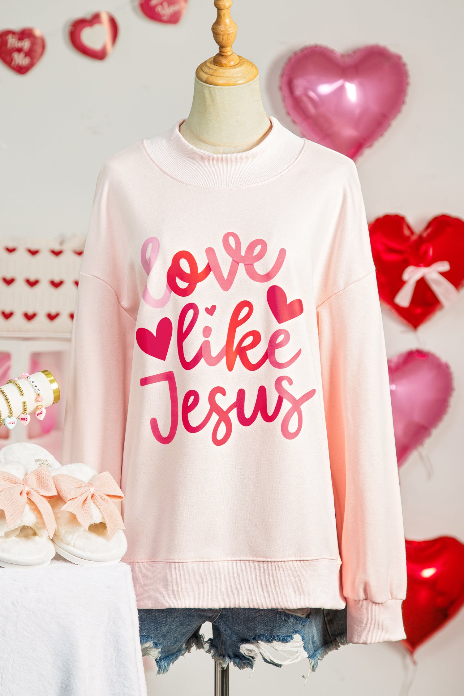 Light Pink love like Jesus Valentines Day Mock Neck Sweatshirt