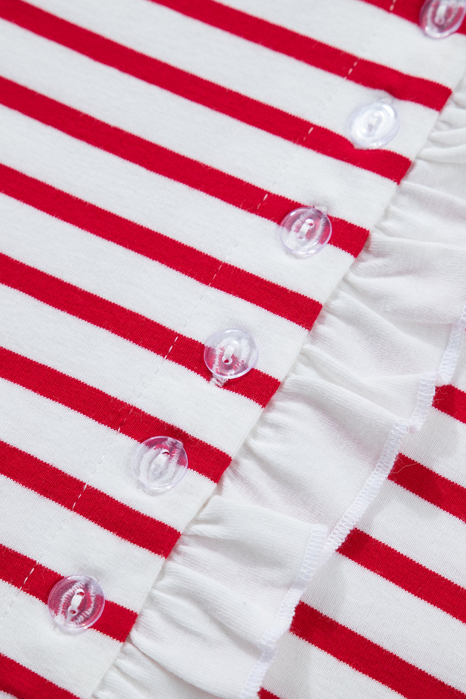 Featuring cute stripes, meet a preppy ruffle contrasted detail.
