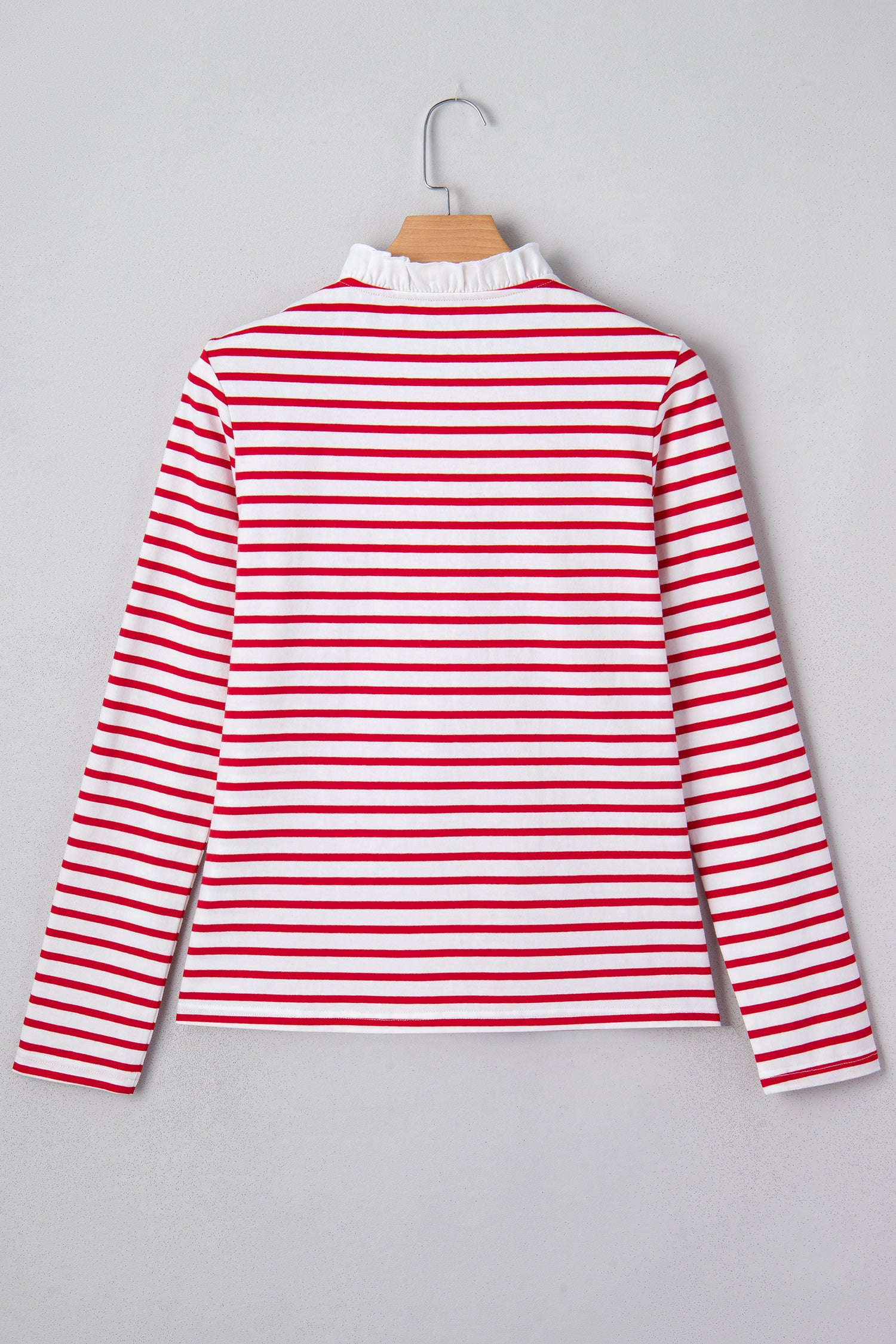 Red Stripe Contrast Frilled Trim Half Button Long Sleeve Top