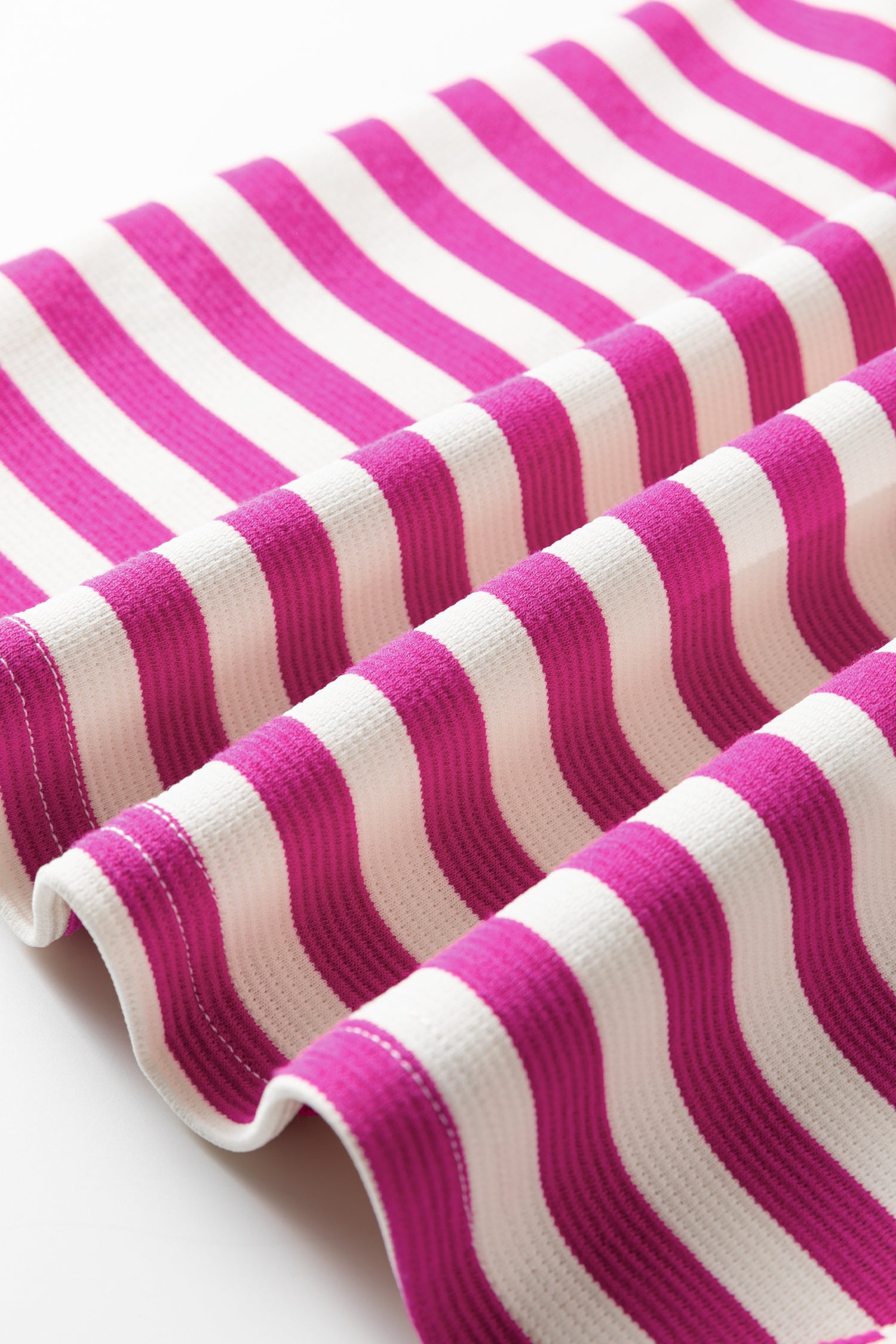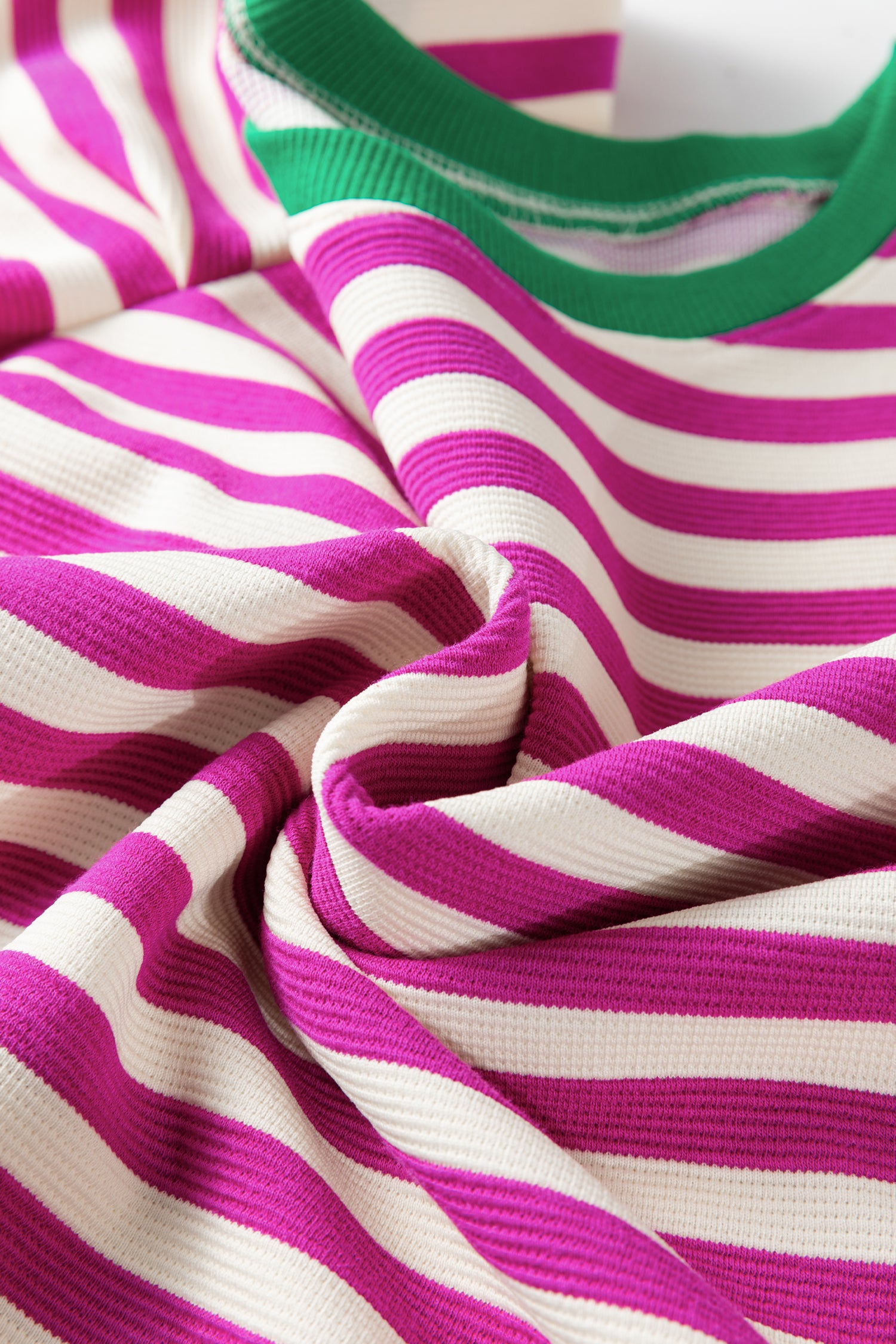 Rose Stripe Short Puff Sleeve Contrast Trim Round Neck Tee