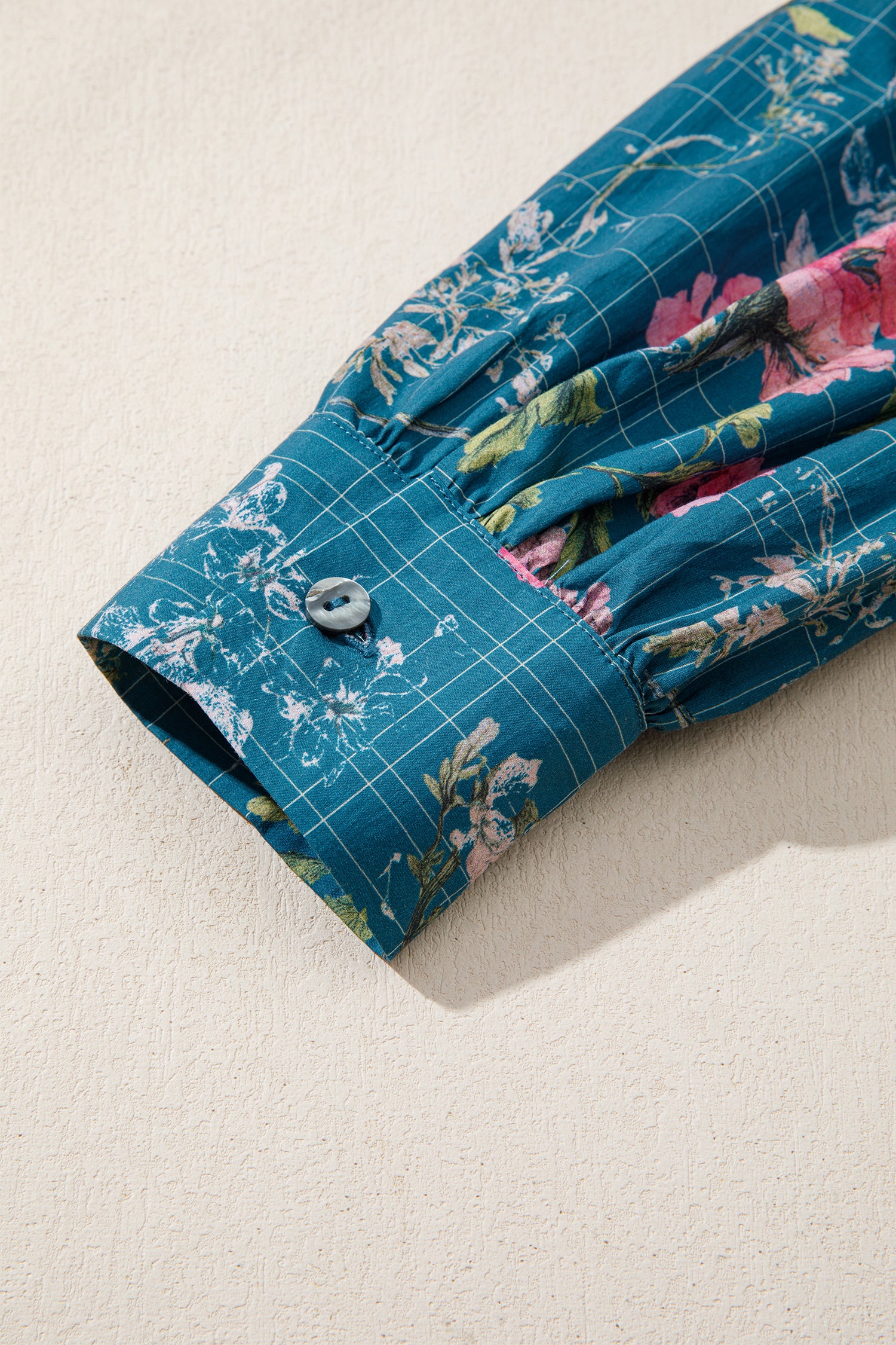 This feminine blouse features a botanical floral silhouette.