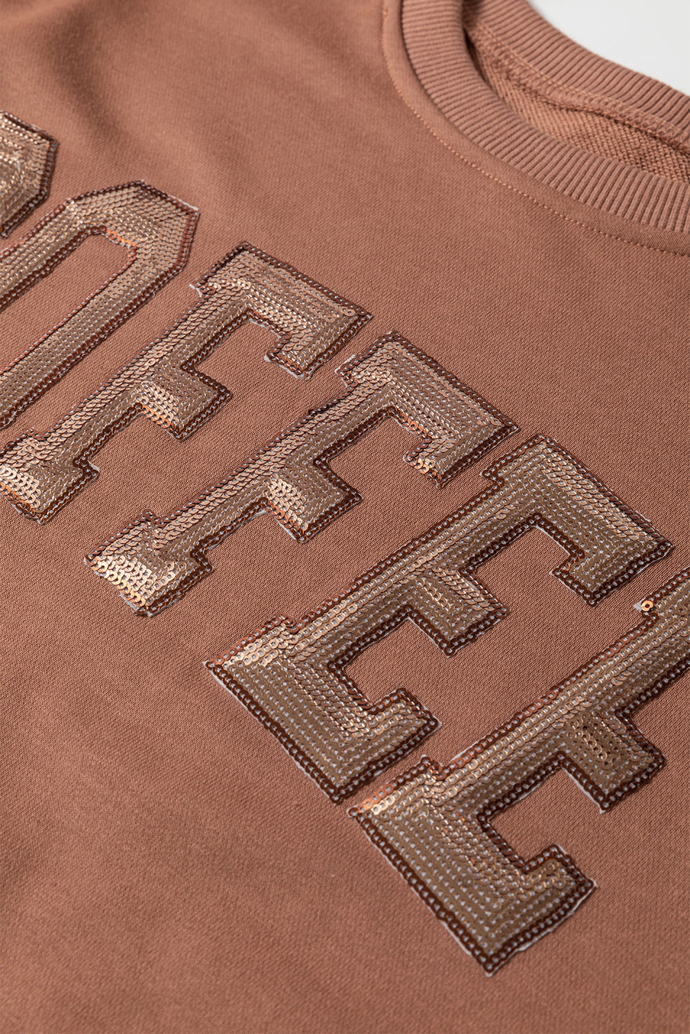 Straw Yellow Sequined COFFEE Loose Fit Sweatshirt and Shorts Set
